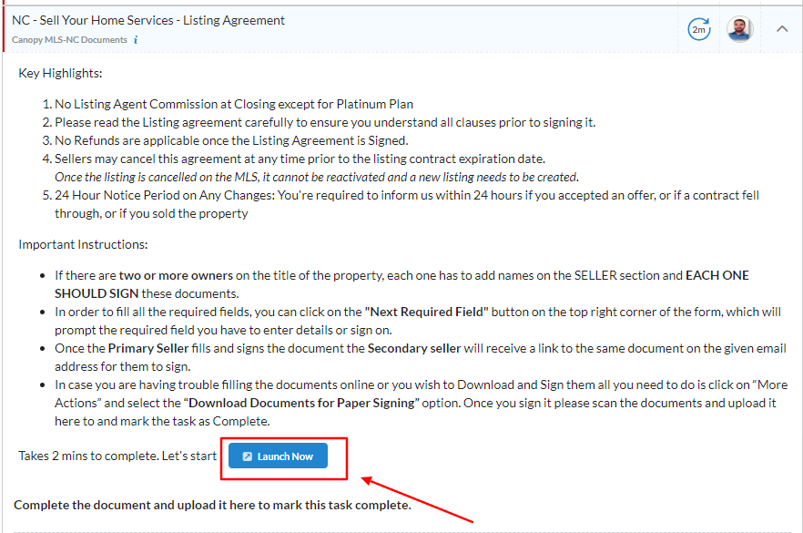 2. To proceed with a desired task, the seller should click on the "Launch Now" button.
