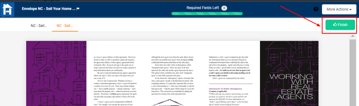 4. After the 1st seller completes their section of the form, they can click the green "Finish" button located in the top-right corner of the document.