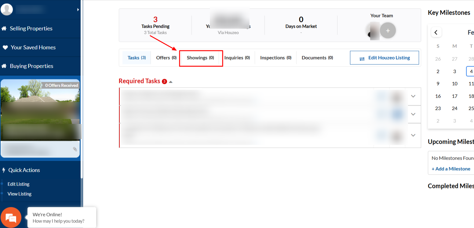 To ensure your property is open for showings, follow these steps on your Houzeo Mobile App: