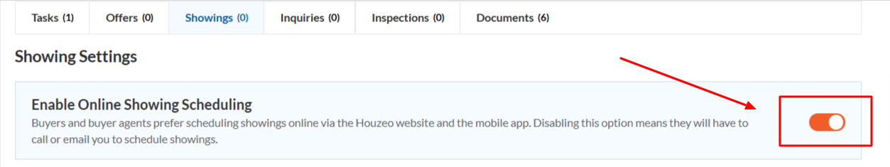 4. Ensure the Showing toggle is turned on, If the setting is enabled, your property is ready to receive showings.