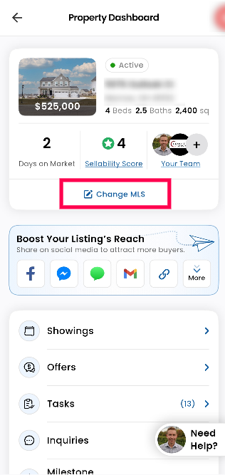 To change the price of your listing, follow these steps on your Houzeo Mobile App: