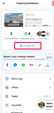 Step 1: Click on the "Change MLS Listing" option.